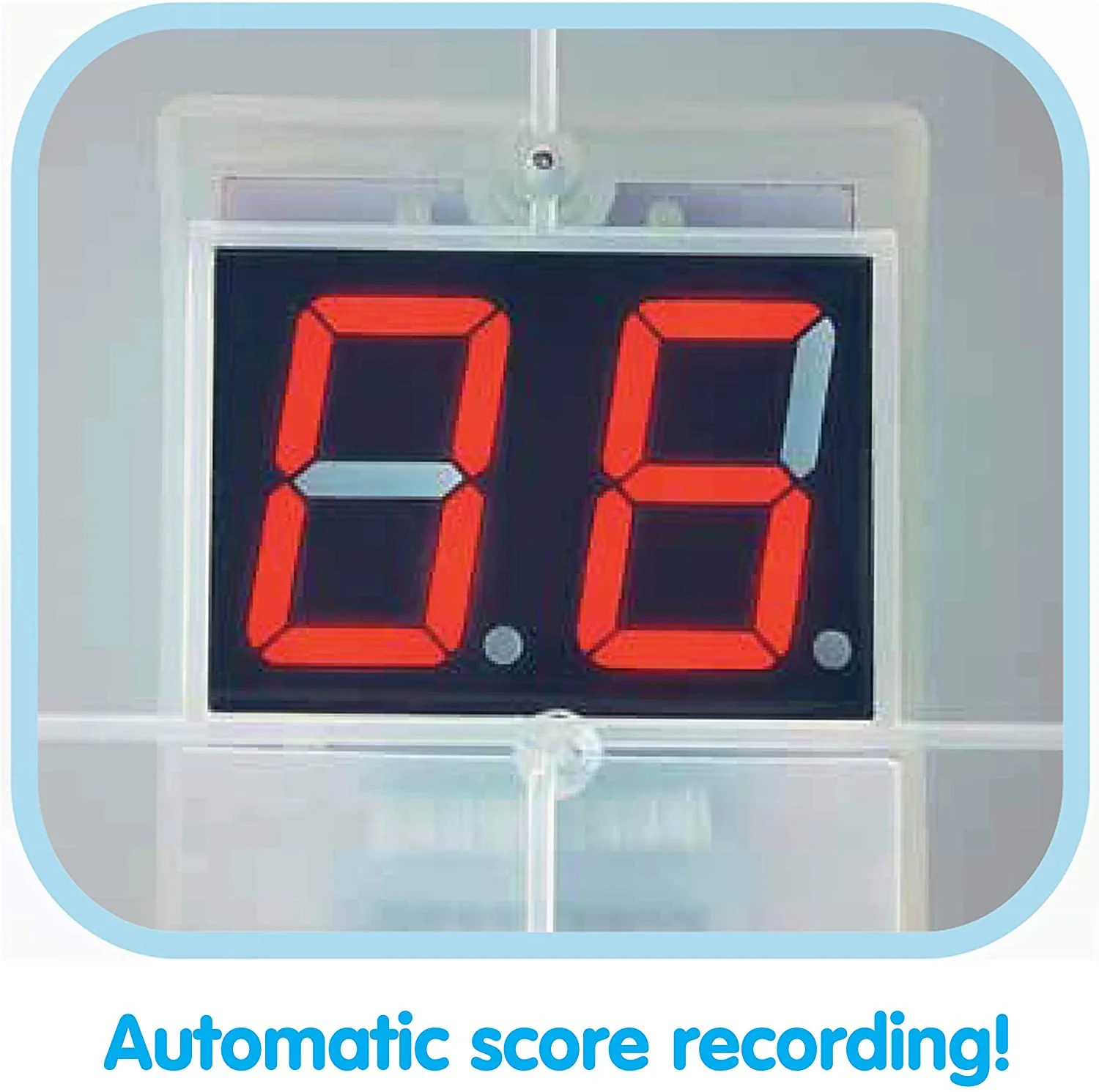 - PRODUCT SPECIFICATIONS: Package contains the over-the-door electronic game and a 6" inflatable basketball and pump. Instruction sheet included. Assembled size 17"W x 12.50" D x 25.5"H. Requires 3 AAA batteries (not included).