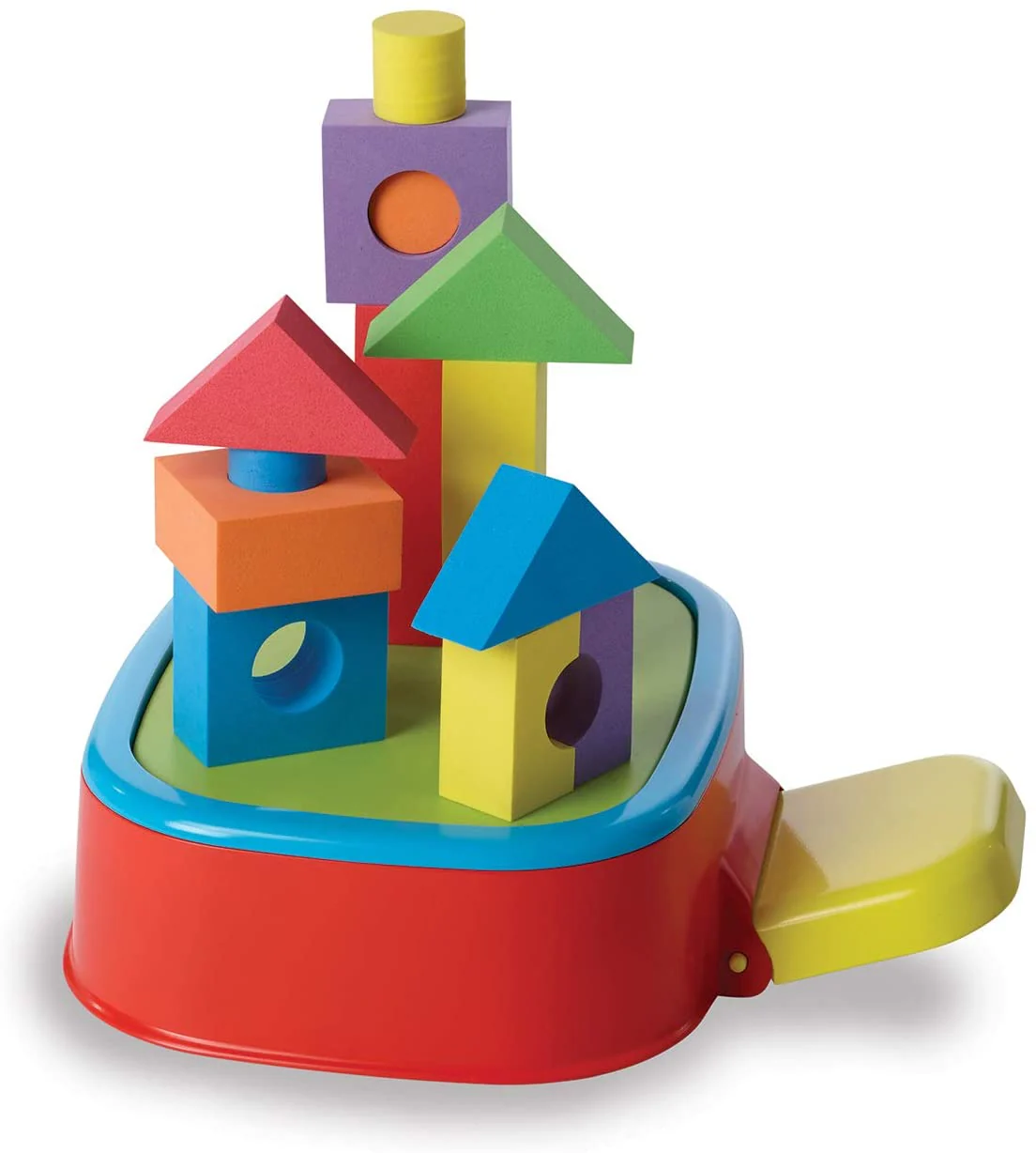 The KaBlocks Blast set features a high-quality silicone launch pad, an easy-to-use stomp lever built with little feet in mind, 22 lightweight foam blocks and guidebook with play tips and ideas.